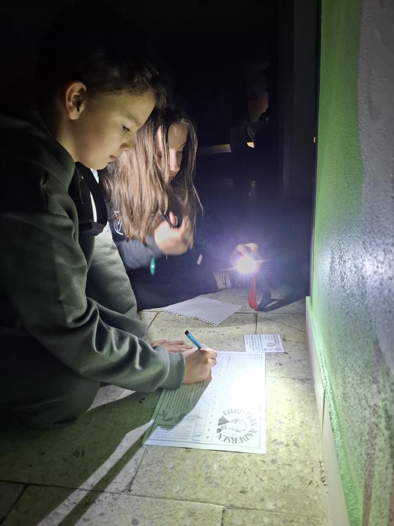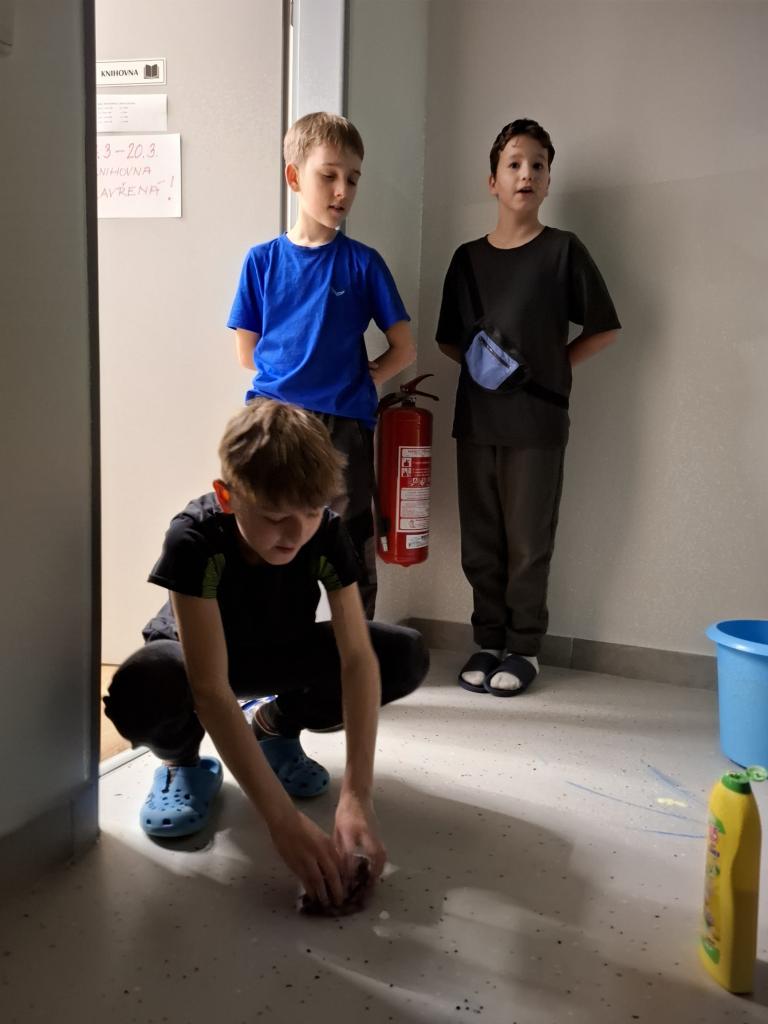 Žáci 4. ročníku dne 18.3.2026 prožili nezapomenutelnou noc ve školní knihovně. Pro děti byly připraveny různé hry a úkoly, které musely společně vyřešit. Kluci a holky si navíc po vyučování sami připravili dobrodružnou stezku s několika stanovišti, na nichž plnili rozmanité úkoly.