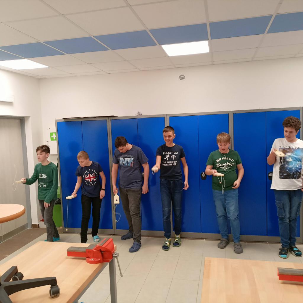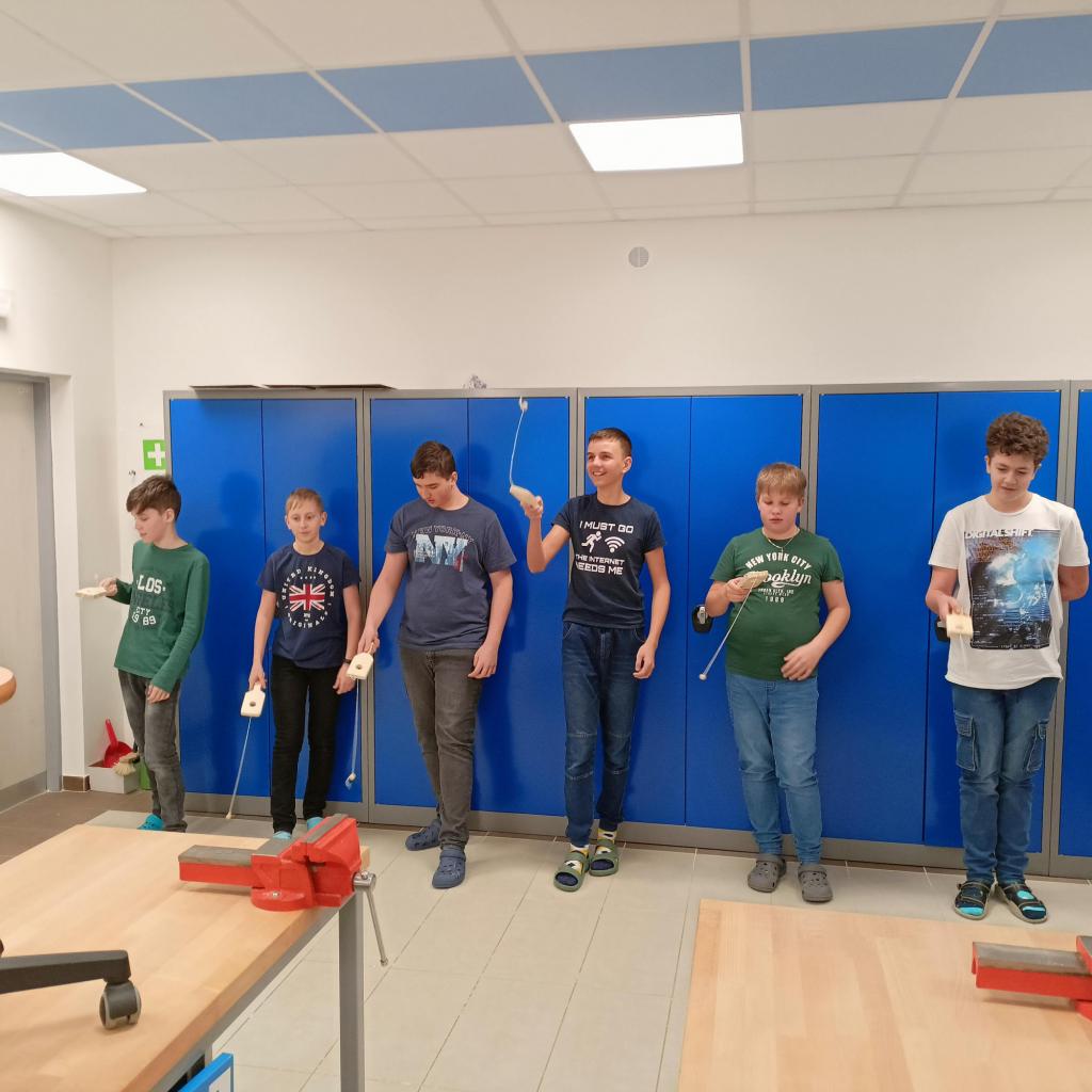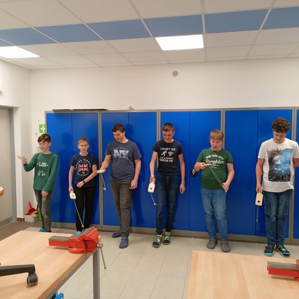 Chlapci 7. třídy v rámci pracovních činností navštěvovali dílnu a byli velmi šikovní. Po vyplutí na plachetnici začátkem školního roku si vyrobili figurku robota. Před Vánoci si odnesli dekorativní vánoční stromeček a sovu. Vyrobili si skvělou hru, kterou si vyzkoušeli i při soutěži. Maminkám ke svátku vyřezali tulipán a vrcholem byla výroba malého stolního fotbálku.