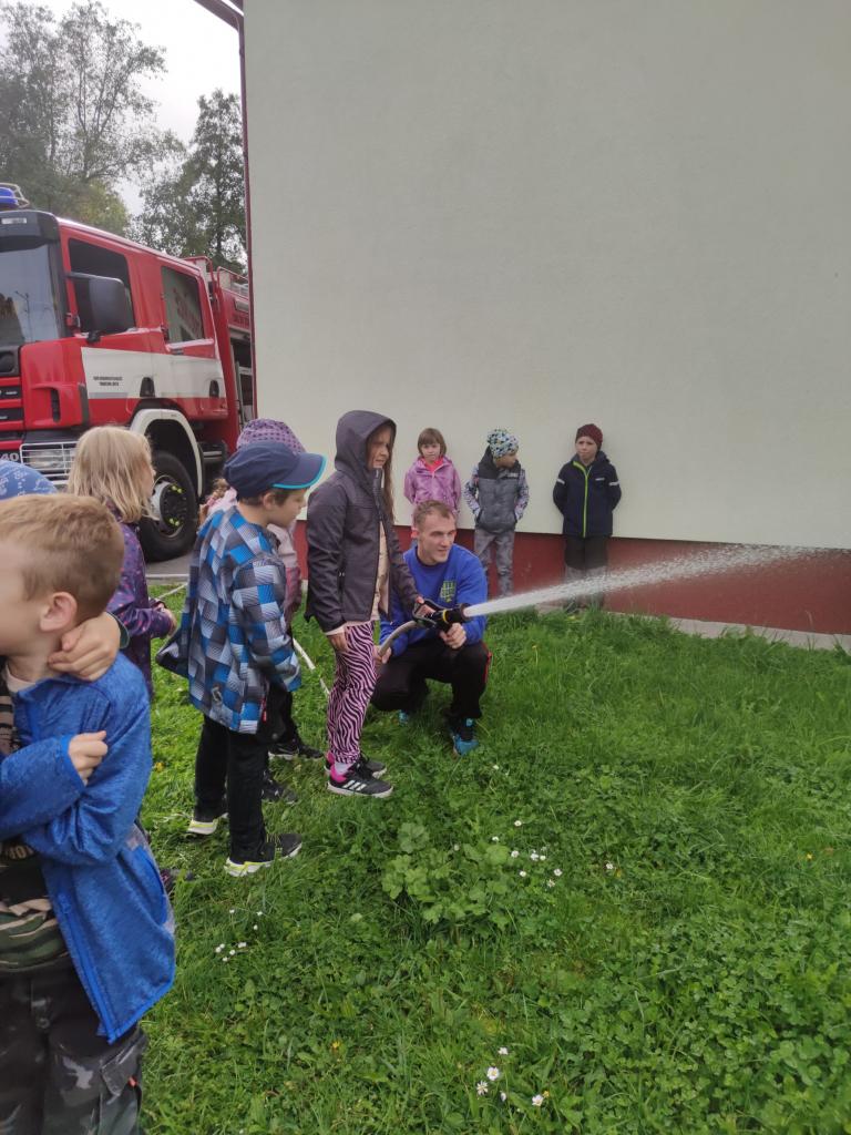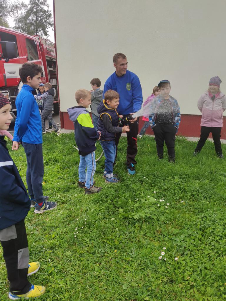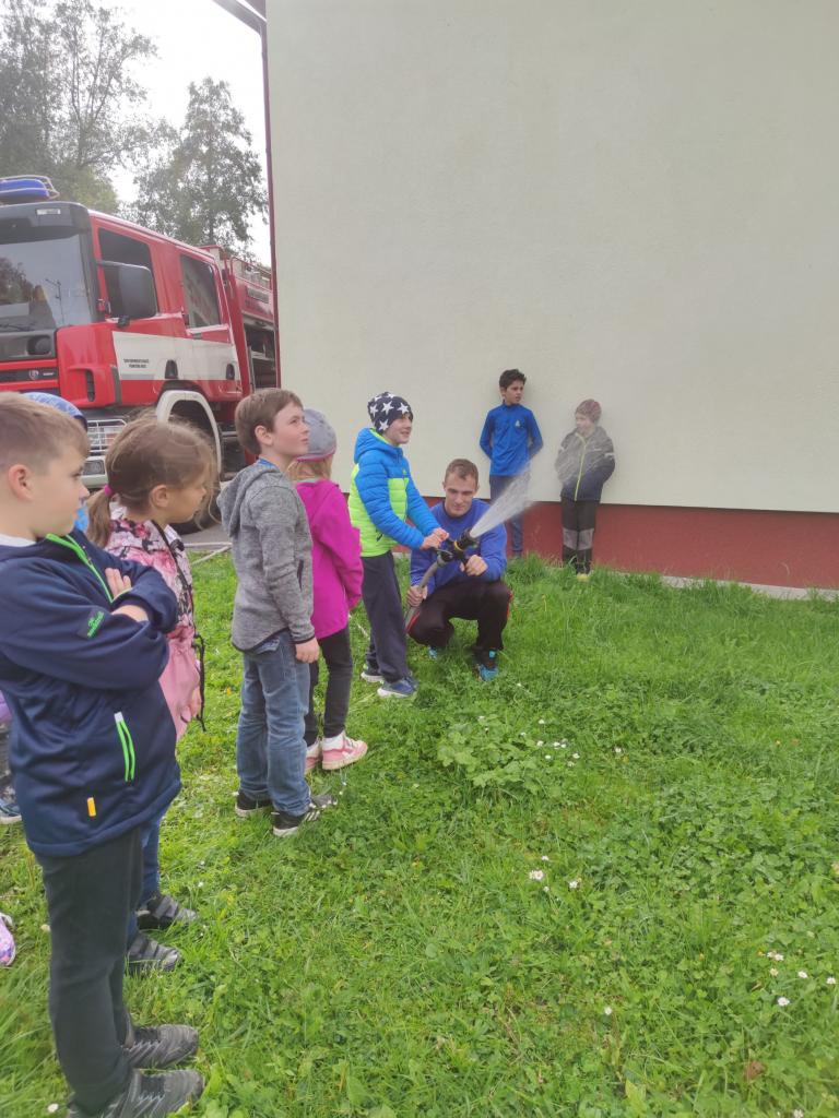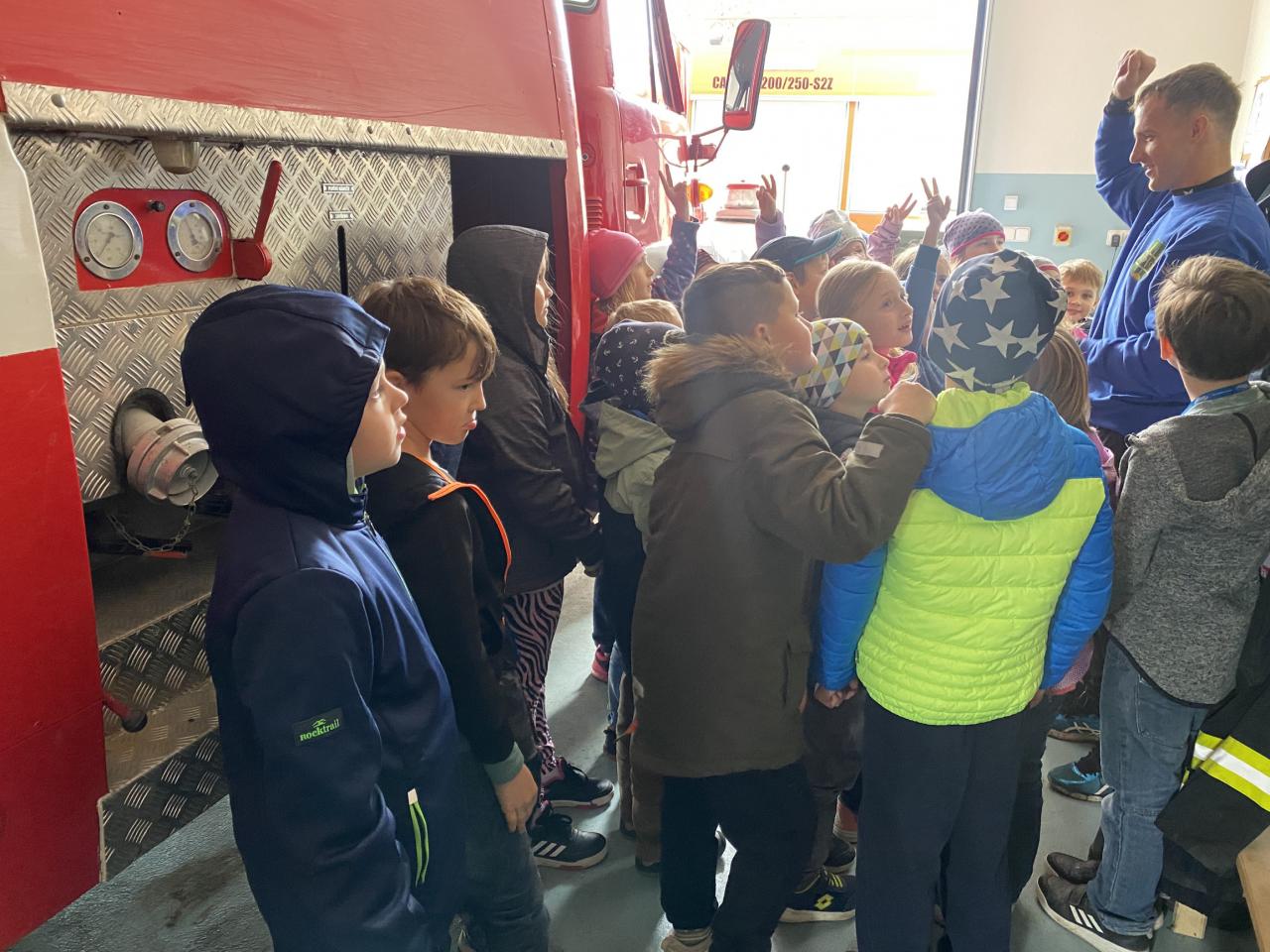 Návštěva hasičárny, ukázka hasičského auta, projížďka v hasičském autě, ukázka hasičských pomůcek