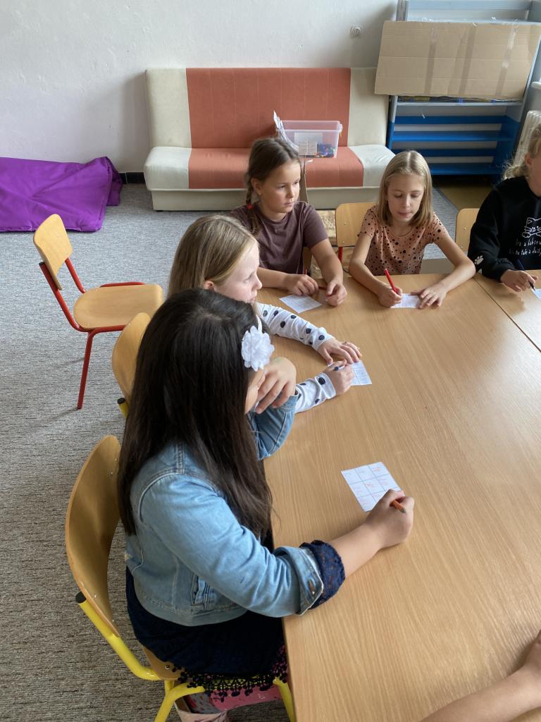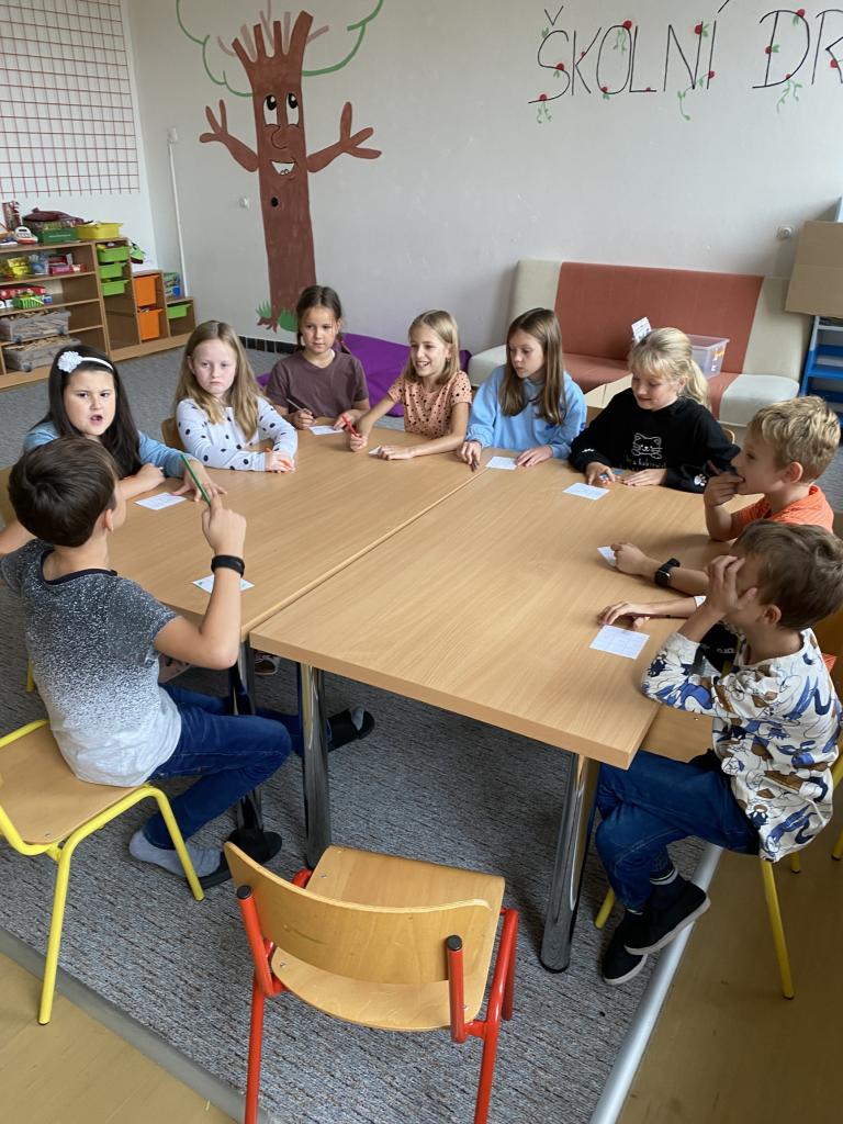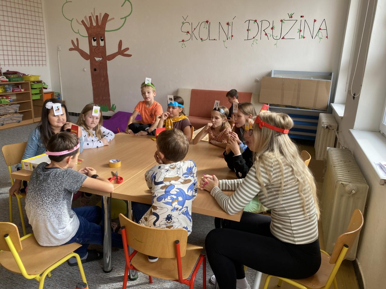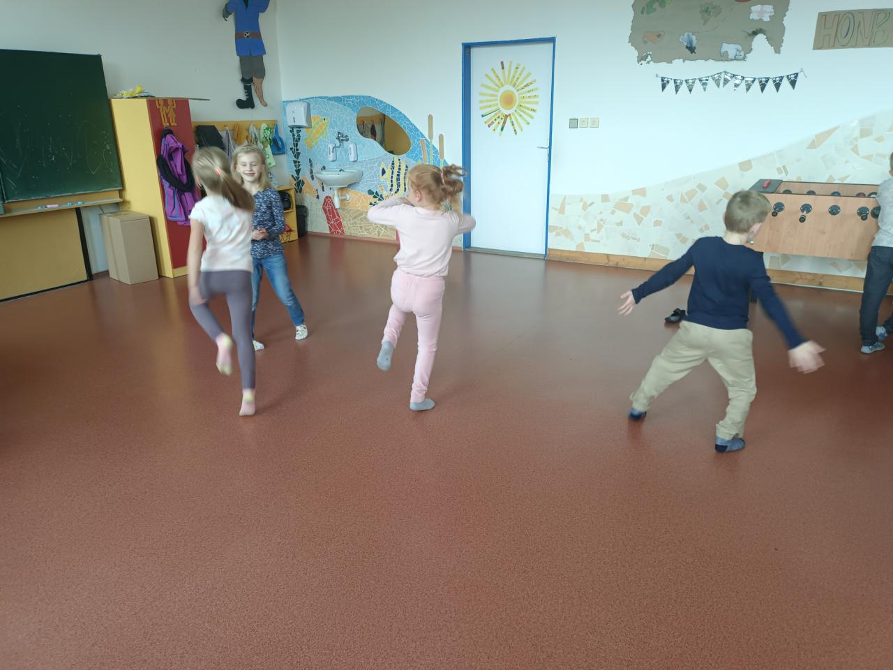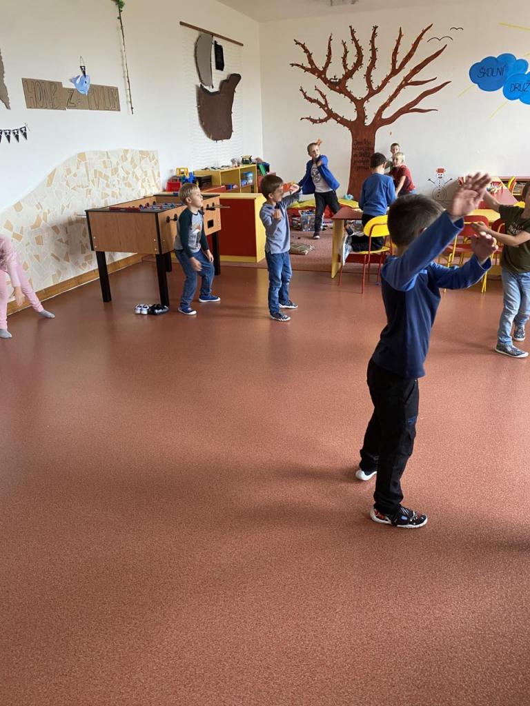 Pondělí jsme strávili společně v tělocvičně, hráli jsme fotbal, skákali přes švihadlo a házeli na koš. Zbytek týdne probíhal v družině, hodně jsme tancovali a hráli různé hry. Ve čtvrtek jsme si předváděli scénky, jak se správně chovat.